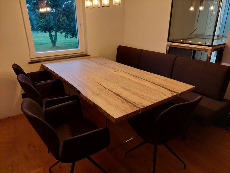 Um den Esstisch versammelt sich die Familie. Dort wird getrunken und gegessen, geplaudert und gelacht, dort will man sich wohlfühlen. Das Mobiliar sollten Sie daher mit besonderer Sorgfalt wählen. Mit einem Naturstamm-Tisch aus hochwertigen, heimischen Hölzern beweisen Sie Geschmack, denn die Unikate werden in der Werkstatt von Wolfgang Bumberger von Hand im Design Ihrer Wahl gefertigt. Wenn Sie möchten, können Sie sogar den Stamm dafür selbst wählen.